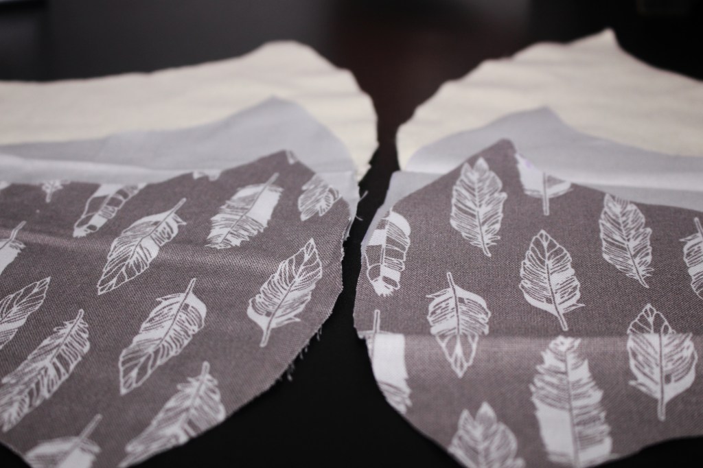 *Note: Make sure you are matching the top side of the mask to the top and the bottom side of the mask to the bottom. - Once you are done you will top stitch the rounded side of the mask, about ½ inch. Do the same thing for the solid pieces.